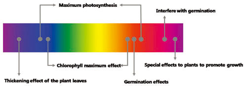 農業用の照明は、人の為の照明ではなく、植物の成長促進用の照明です。植物固有の生長に適合した色や光合成有効