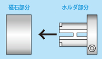 樹脂ホルダは磁石部にはめ込んで利用します。 付属品・ナット・ネジ各1本
